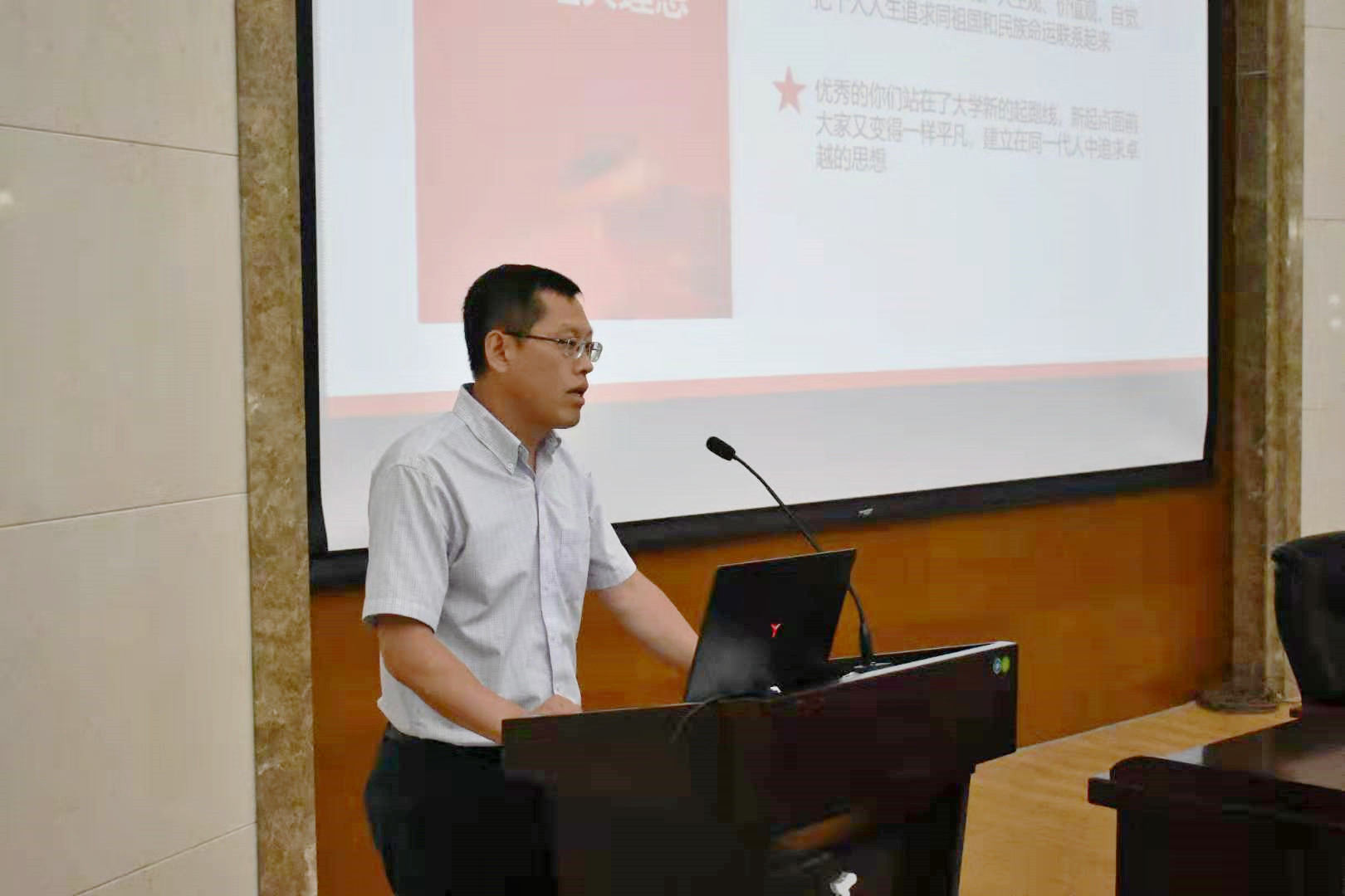 9月4日,在南岭校区仿生楼报告厅,yd2333云顶电子游戏党委书记李善兴为全体新生上第一堂党课,勉励新入学学生坚定理想信念,展现青春力量。