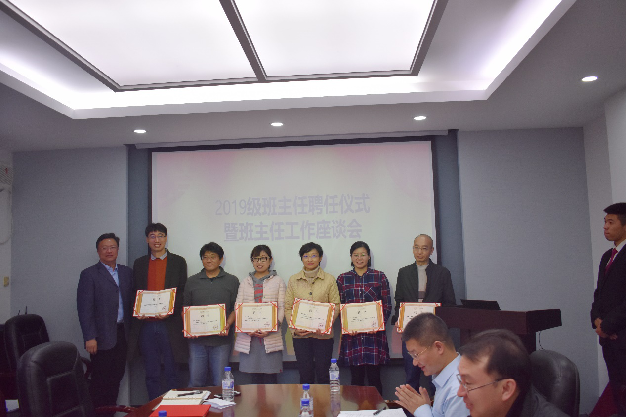 为了贯彻落实教育部及学校有关文件精神,全面做好学生思想政治教育工作,11月7日上午,yd2333云顶电子游戏召开了2019级班主任聘任仪式暨班主任工作座谈会。学院院长高镇海、党委书记李善兴、党委副书记兼副院长盛磊、2018级及2019级共30名班主任参加了本次会议。会议由学生工作办公室主任吴昊主持。