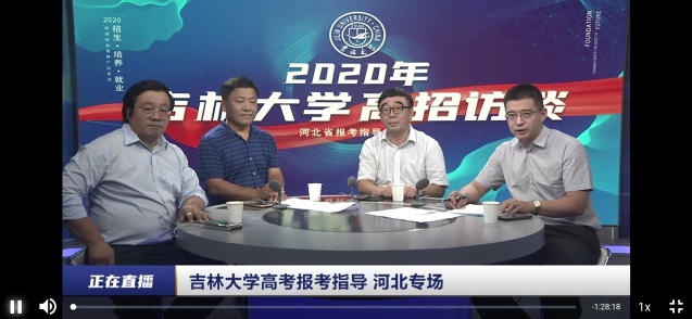 学校招生办有针对性的在今日头条等媒体上宣传了各个学院的特色及优势,收到了社会各界的广泛关注,并取得了良好的宣传效果;同时,学校开展了院长访谈节目,高振海院长参加了吉林大学高招直播院长权威解读,从招生-培养-就业三个关键环节进行了全方位解读,引起社会各界的广泛关注;我院和食品科学与工程学院共同负责河北省招生及宣传工作,7月23日河北省刚刚公布高考分数,学校招生办就组织了2020高考直播河北省报考指导专场,由学院副院长王忠恕、食品科学与工程学院副院长周亚军,河北省招生宣传大使张学东、肖金良老师做客直播间,第一时间回答了考生及家长们咨询的相关事宜,受到一致好评。