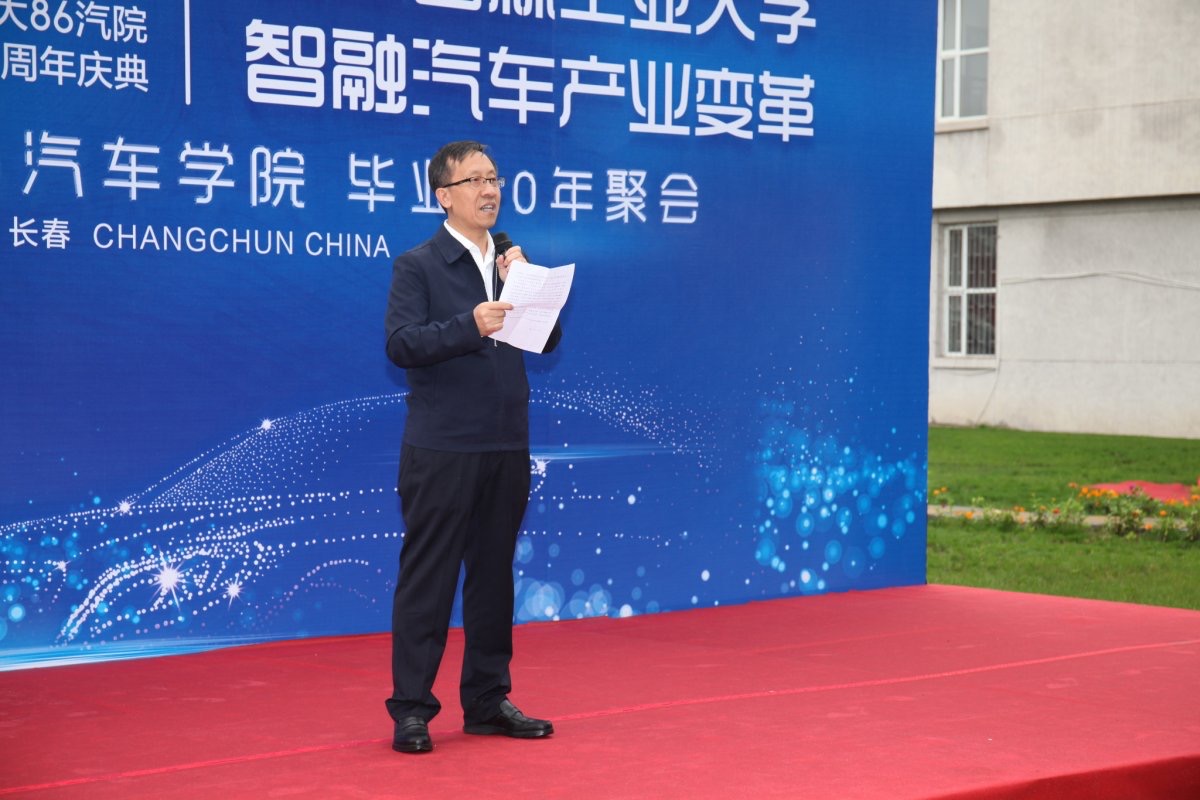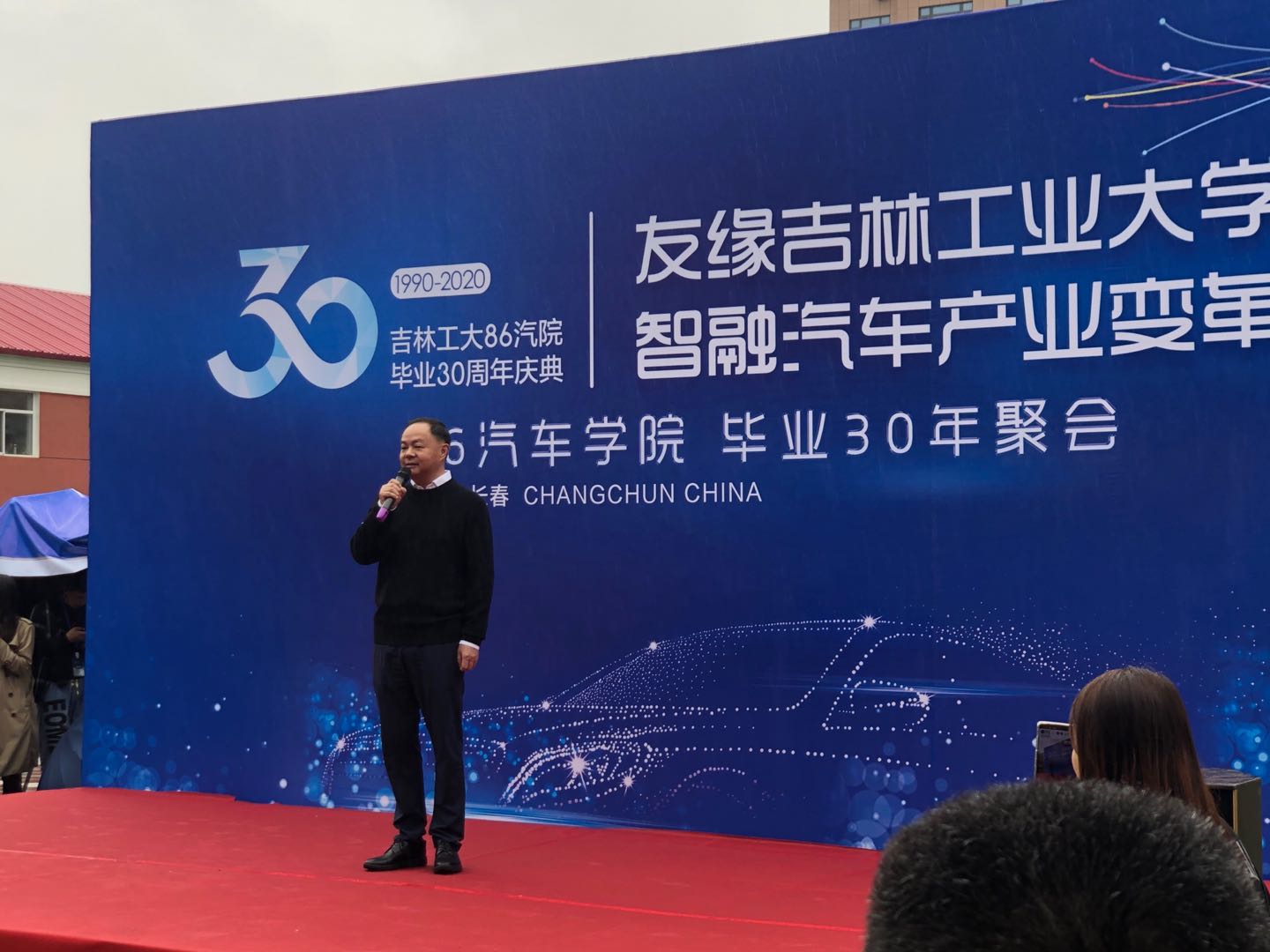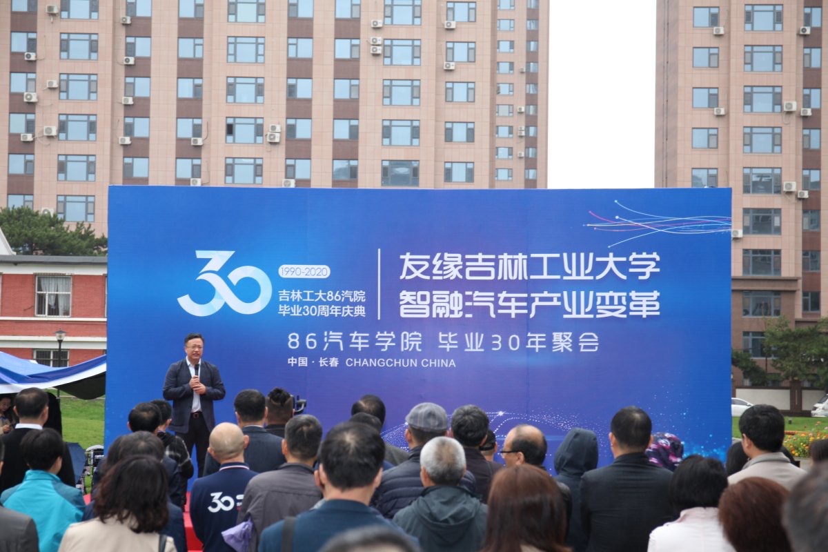 活动伊始,秋雨纷纷。边铁副校长致辞,他代表学校向返校参加纪念活动的校友们表示热烈欢迎。他提到,吉林大学一直以来非常重视校友工作,学校的发展离不开校友们的关注与支持。本次86级校友向yd2333云顶电子游戏捐赠智能新能源汽车1辆、捐款10万元、向南岭校区捐赠纪念石碑,表达了86级校友对学校的肯定、对老师的感恩之情。热忱欢迎各位校友常回母校看看,共同为学校发展献策献计。