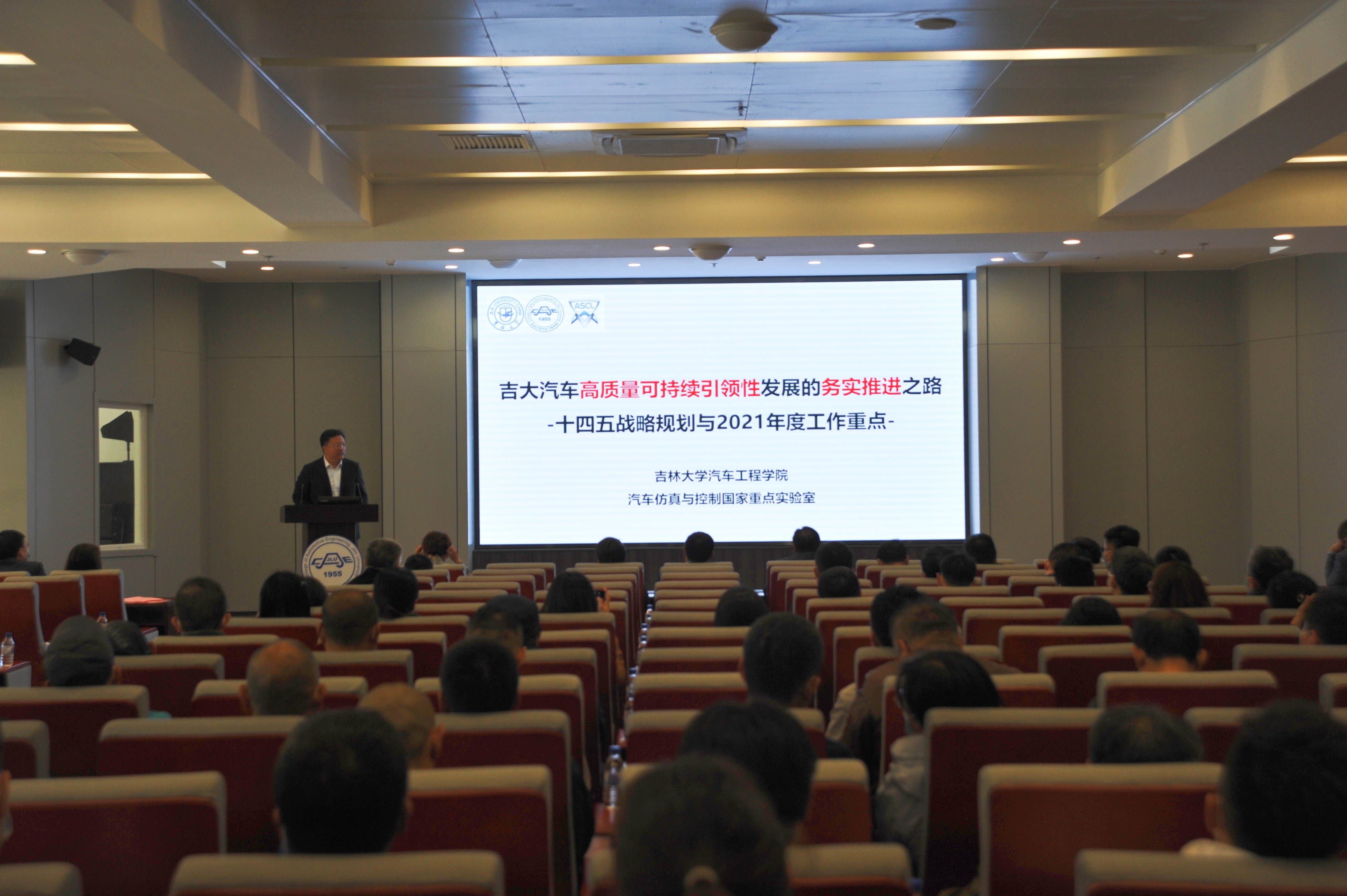 学院院长、国家重点实验室主任高振海以“吉大汽车高质量可持续引领性发展的务实推进之路”为主题,全面、立体的阐释了汽车学科“十四五”发展规划思路,以及2021年的整体工作安排。