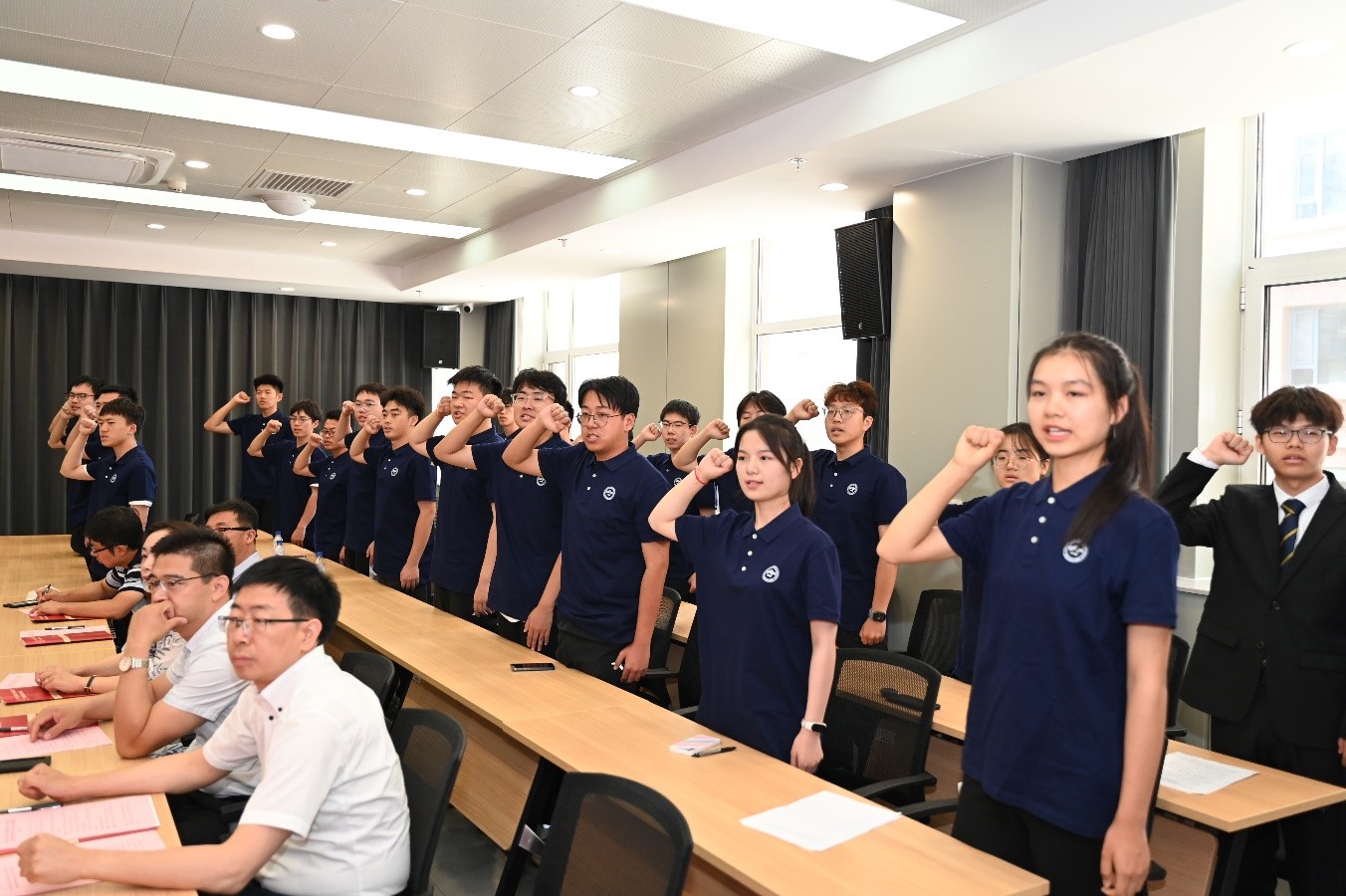 “引擎工程”优秀学生培养计划全体学员进行入班宣誓。庄重承诺将精通专业,感恩母校,忠心祖国,为国家需要和行业发展贡献自身力量。