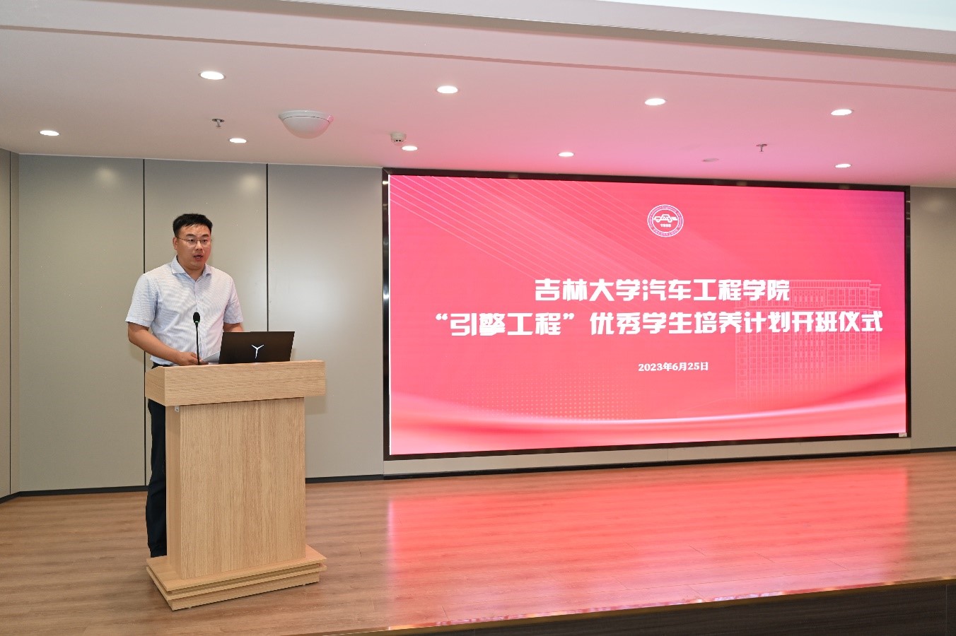 吉林大学党委常委、副校长张国兴致辞,对yd2333云顶电子游戏“引擎工程”优秀学生培养计划的成功启动和入选“引擎工程”的同学们表示祝贺。张国兴强调,“引擎”计划的设计实施是贯彻落实党的二十大精神、深入开展学习贯彻习近平新时代中国特色社会主义思想主题教育的生动实践,是努力服务学校新工科集群建设发展、推动人才培养质量发展的创新之举。希望同学们能够以“引擎工程”为平台,点燃信仰信念的引擎,做敢为人先的技术引擎,做中流击水的行业引擎,全面提升综合素质,为未来发展汲取能量,成为驱动中国汽车产业创新发展的新“引擎”。