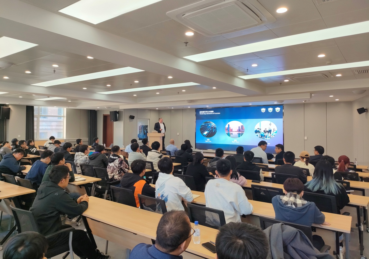Holger Opfer博士随后为我院学生做了Tomorrow's Battery Systems In Terms of Integration and Charging Concepts的主题学术报告,使得师生们加深了德国大众在新能源汽车产业的布局和新技术引用, 报告后与同学们展开了热烈的互动。
