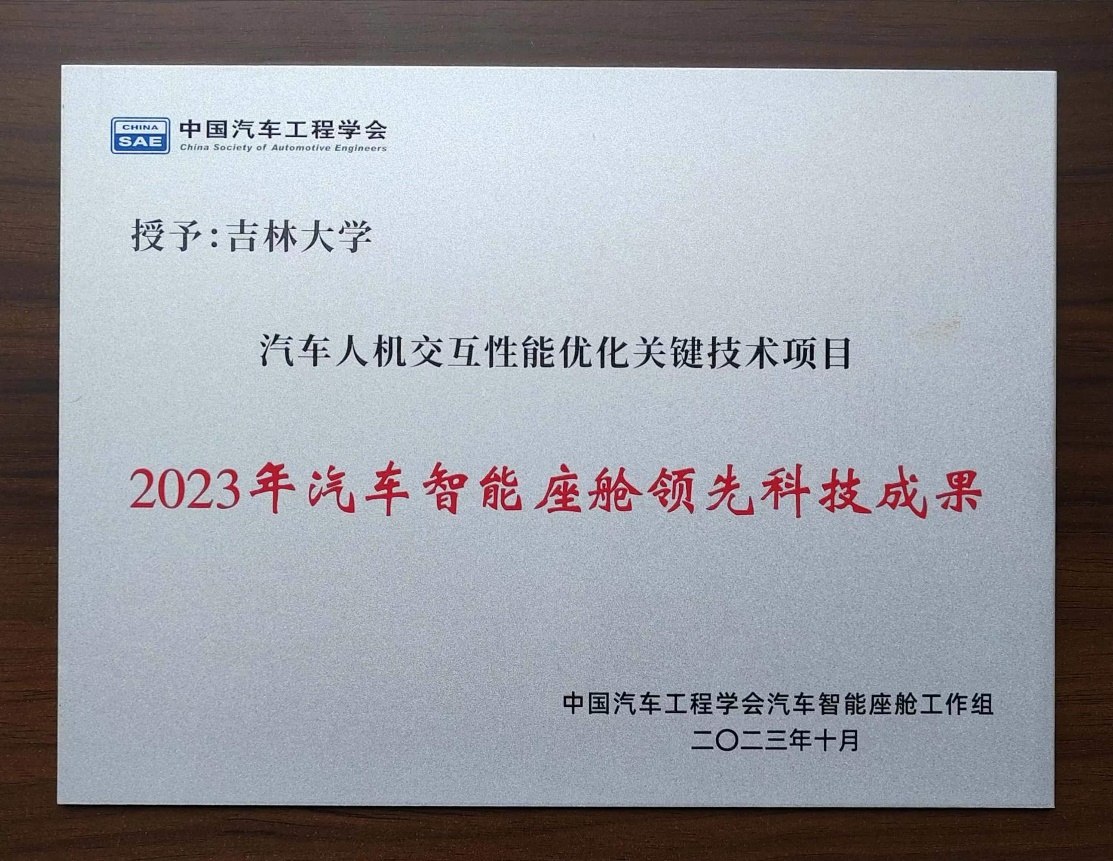 2023年10月20日,中国汽车工程学会组织开展了首届汽车智能座舱领先科技成果评选。经过项目申报、专家预评审以及答辩专家委员会最终评审等环节,yd2333云顶电子游戏的高镇海教授、胡宏宇教授、沈传亮教授、高菲副教授等合作完成的“汽车人机交互性能优化关键技术“项目获评2023中国汽车工程学会汽车智能座舱领先科技成果(全国高校仅两家获此奖励)。
