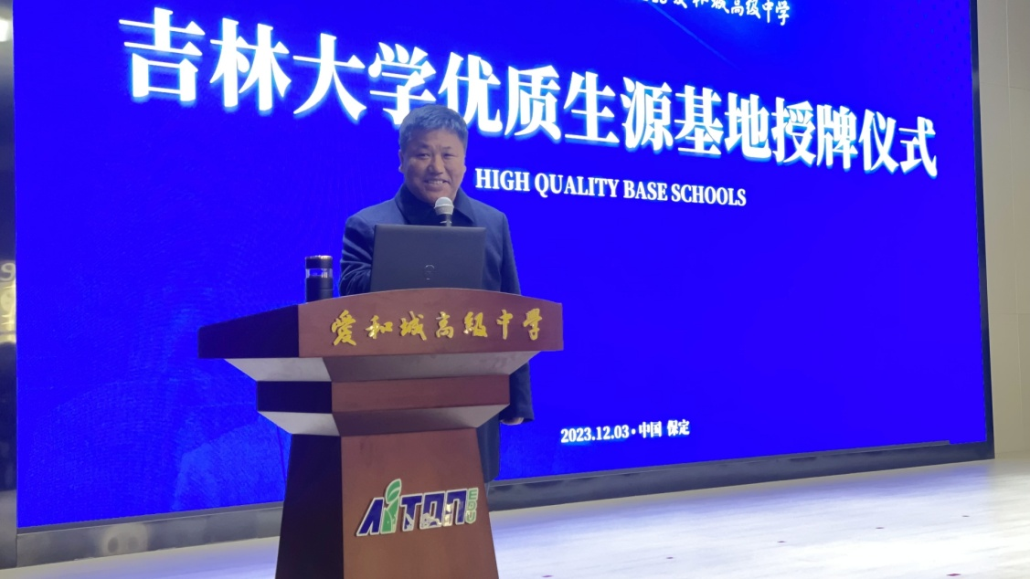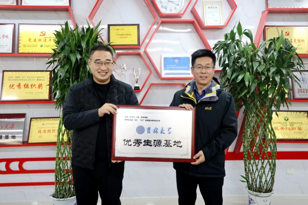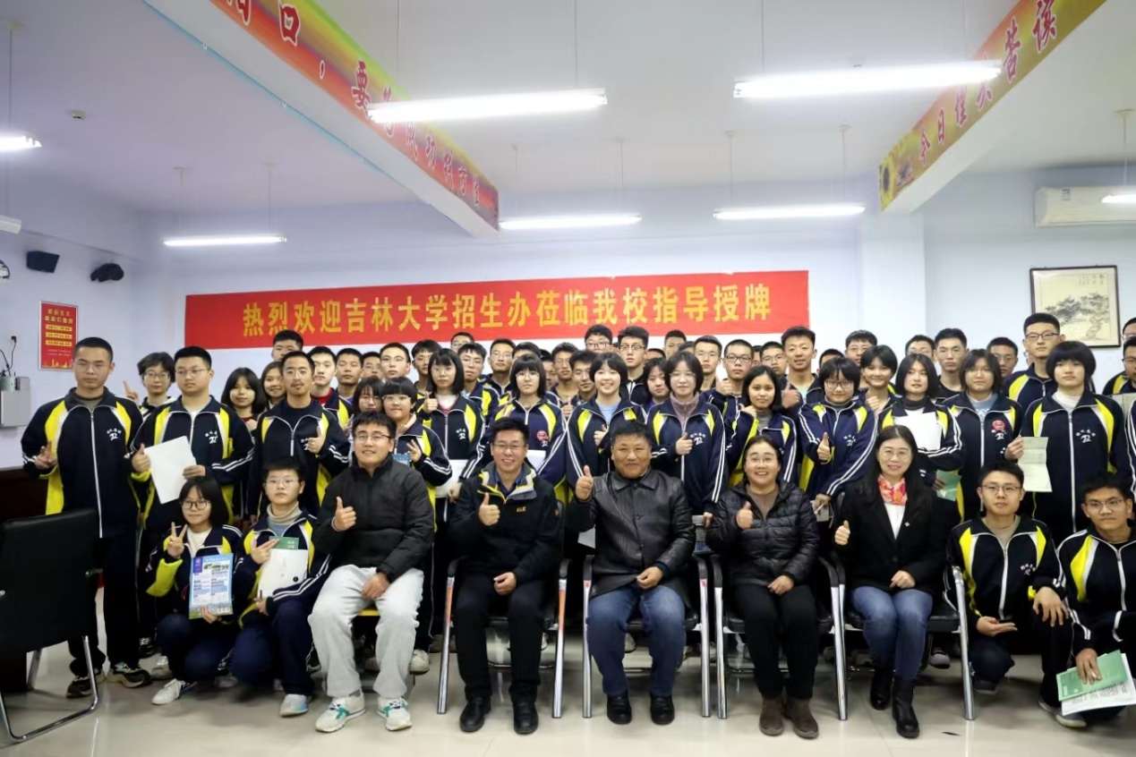 杨昌海老师代表吉林大学向两所高中授予了优秀生源基地牌匾。双方就进一步加强合作进行了深入探讨并达成了共识。宣讲中我们注重融入当地文化因素,用孩子们喜闻乐见的语言和事例,图文并茂、生动活泼的讲述吉大故事。特别是在清河志臻中学,我们邀请了中国农大负责河北招生的两位校友—李老师和迟老师一同前往。同室依次演讲,共同答疑解惑。在志臻中学搞了个吉大校友会。充分展现了吉大的办学实力,破除了河北考生和家长在东北上学就得在东北就业的误解和困惑。