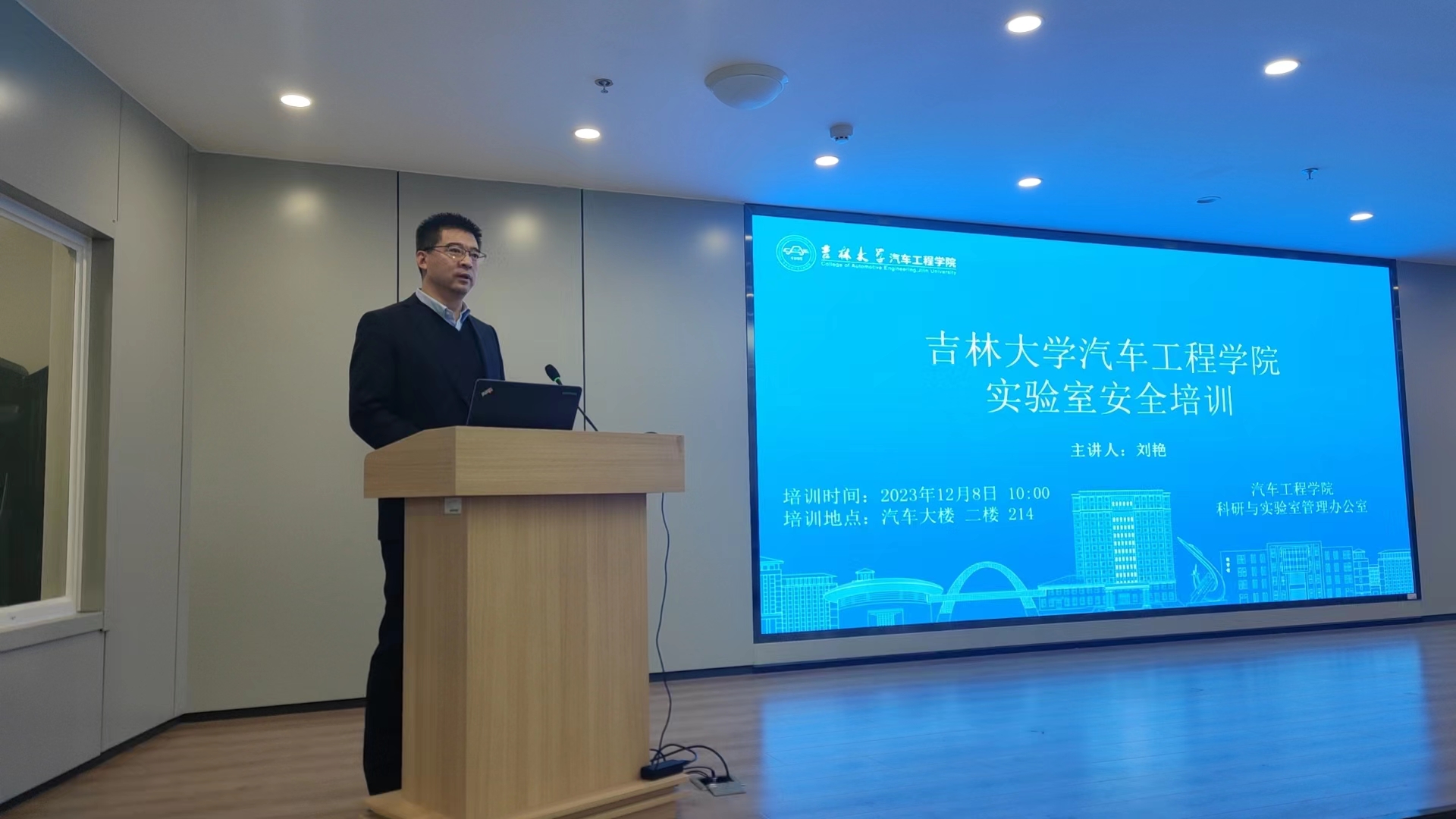 为扎实做好我院实验室安全工作,加强学院实验室安全队伍建设,提升实验室安全意识,2023年12月8日,yd2333云顶电子游戏于汽车大楼214室开展实验室安全培训大会。学院全体实验技术人员、科研团队实验室安全负责老师、研究生代表、本科大创车队负责老师以及车队负责学生参加了培训大会。会议由学院副院长王忠恕教授主持,邀请吉林大学实验室管理处刘艳研究员做题为《高校实验室安全管理制度》的报告。