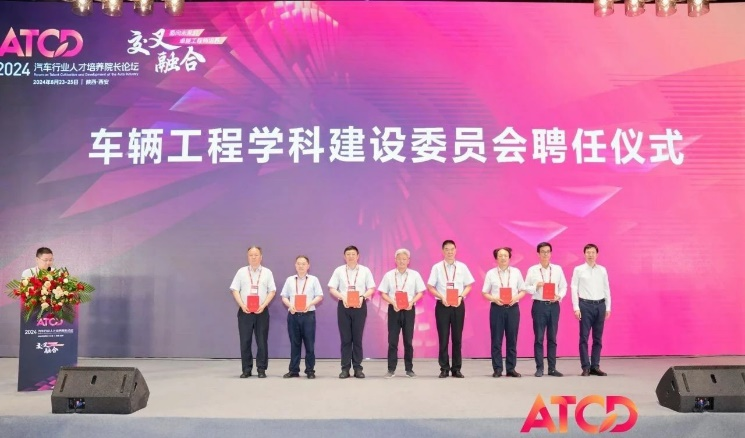 大会开幕式举行了隆重的车辆工程学科建设委员会聘任仪式。为落实二十届三中全会“分类推进高校改革,建立科技发展、国家战略需求牵引的学科设置调整机制和人才培养模式,超常布局急需学科专业,加强基础学科、新兴学科、交叉学科建设和拔尖人才培养,着力加强创新能力培养”的重要部署,统筹推进智能电动车辆急需学科专业建设的有序开展,充分发挥产业发展对学科建设的导向引领作用,提升学科建设服务国家战略能力,经研究决定设立车辆工程学科建设委员会。吉林大学汽车研究院院长管欣教授作为七名委员之一接受了聘书。