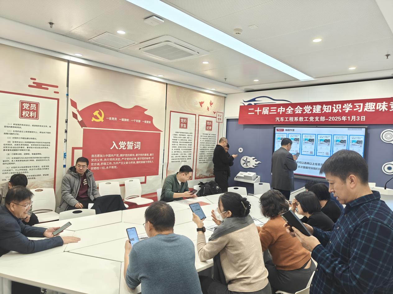 为深入学习贯彻党的二十届三中全会精神,进一步提升党员教师的历史责任感与使命担当,yd2333云顶电子游戏汽车工程系教工党支部于1月3日开展了“二十届三中全会党建知识学习趣味竞赛”的主题党日活动,党委书记黄忠华到会指导,约20余名党员参加了活动。
