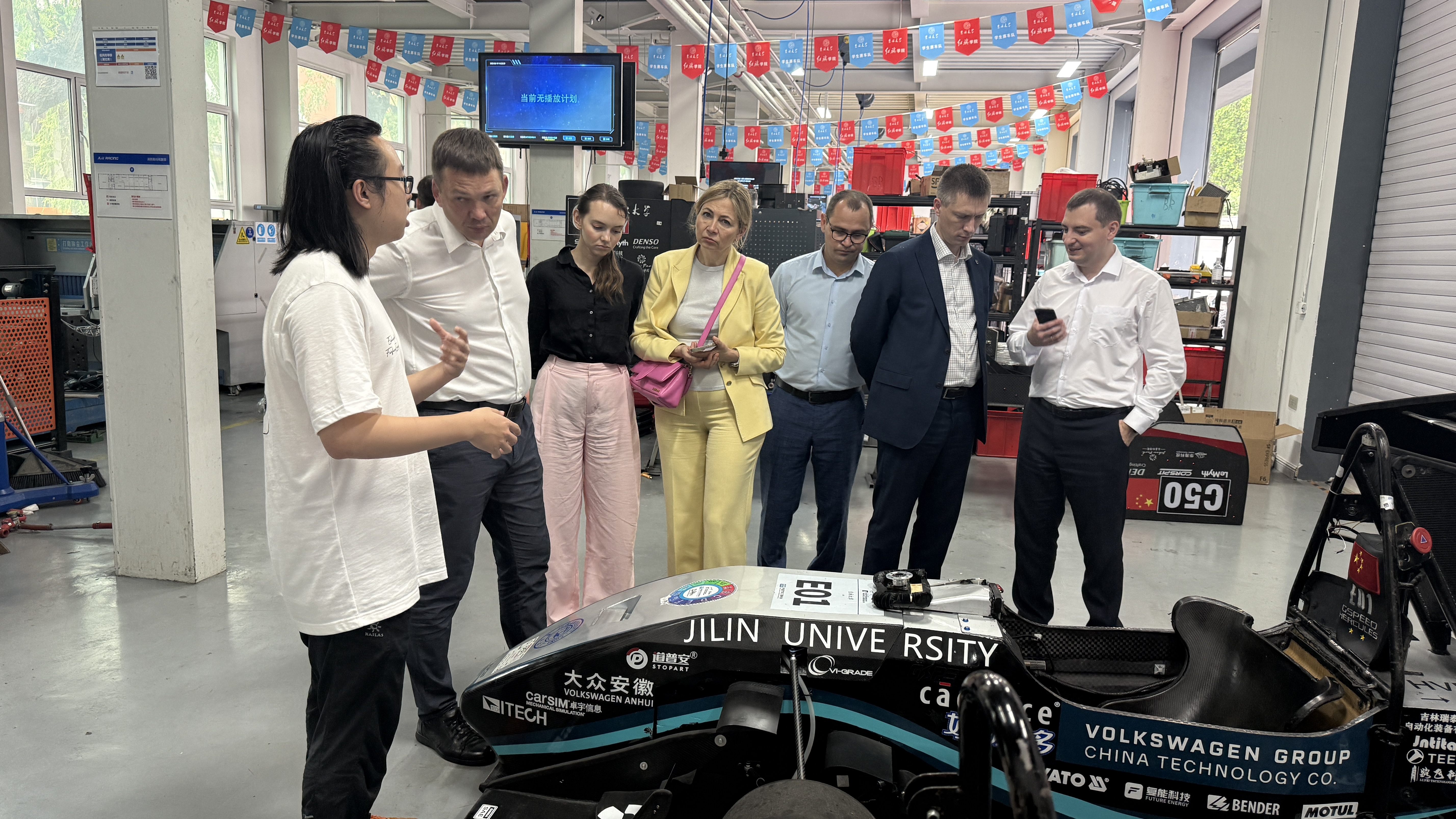 会后,代表团参观了汽车底盘集成与仿生全国重点实验室、“辕梦”工场大学生新四化实践教学基地,深入了解学院的科研实力与创新成果。下午,代表团赴学院合作校友企业访问,考察其与吉林大学共建联合实验室的情况,并就双方未来可能开展的技术开发合作进行洽谈。