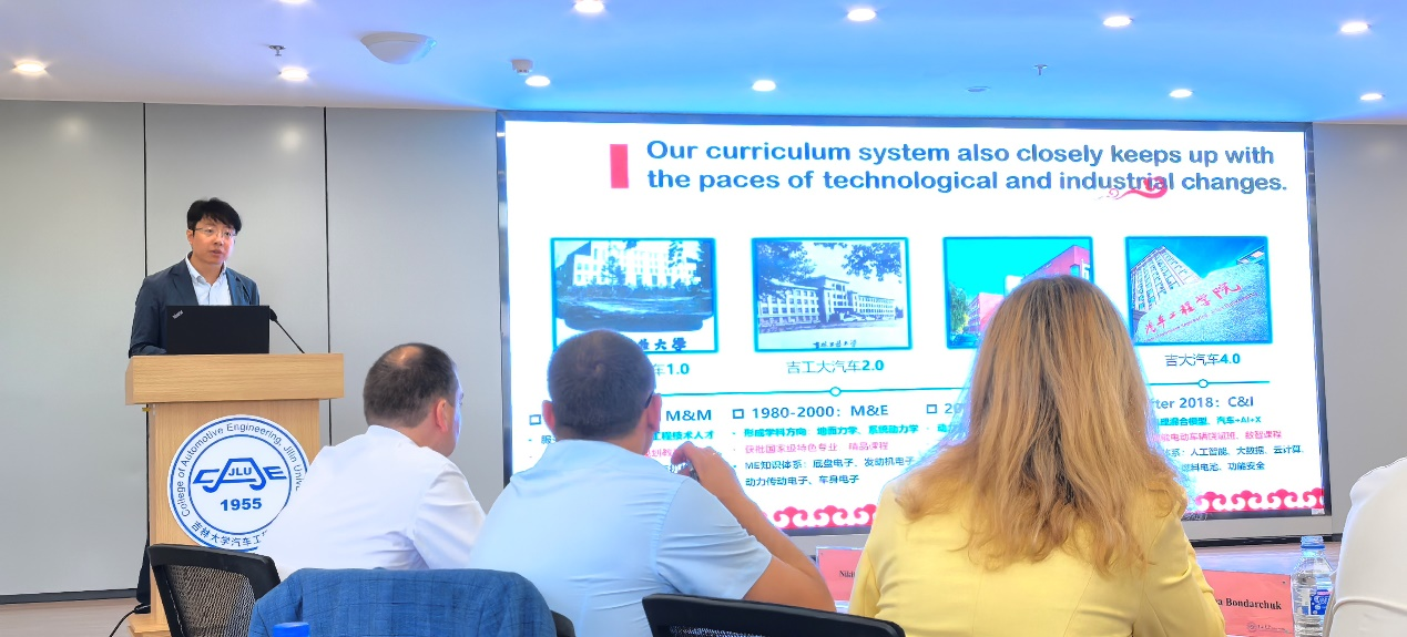 俄罗斯莫斯科鲍曼国立科技大学Lipgart工程中心主任Dmirty Butaravich、交通系统研究所所长Anton Tumasov分别介绍了莫斯科鲍曼国立技术大学及其轮式车辆系、下诺夫哥罗德汽车厂的基本情况,最后介绍了此次来访吉林大学的目的和合作需求。双方就校企合作模式、学生实践培养、国际科技合作等议题展开讨论交流,并就智能新能源汽车技术领域开展合作研究,初步达成意向性框架合作协议。