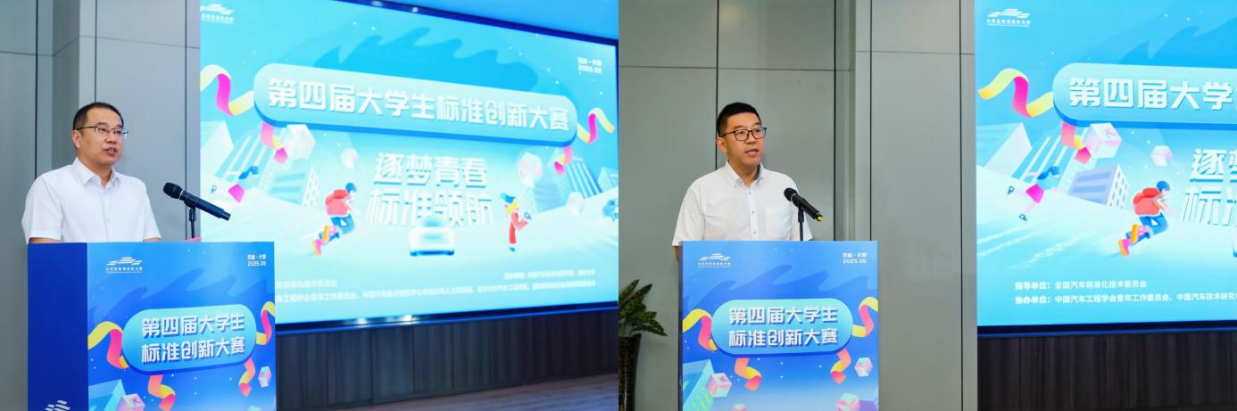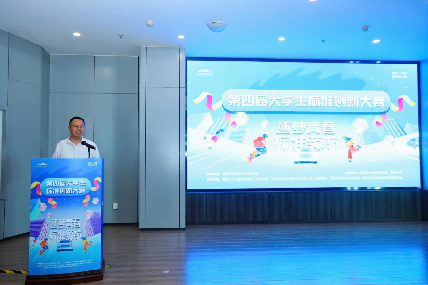 2025年8月19日-21日,由中国汽车标准化研究院与吉林大学联合主办的“第四届大学生标准创新大赛”在yd2333云顶电子游戏举行。吉林大学党委常委、副校长张国兴,中国汽车技术研究中心有限公司党委委员、副总经理周华,中国汽车工程学会副秘书长赵立金,中国金属学会理事长、国际标准化组织前主席、世界钢铁协会前主席张晓刚,全国标准化教育标准化工作组秘书长、深圳市标准技术研究院研究员黄曼雪,吉林大学团委书记马景惠,yd2333云顶电子游戏党委书记黄忠华,院长朱冰及有关同志出席开幕式。