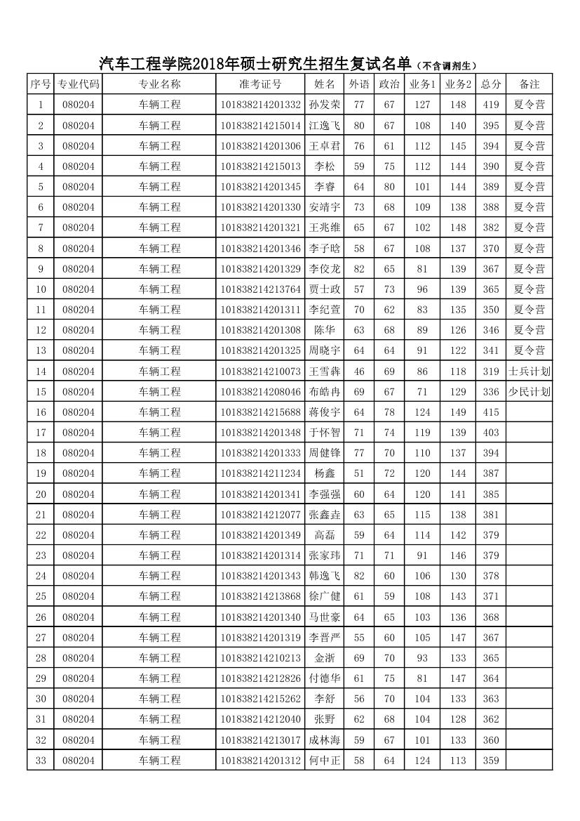 我院2018年硕士研究生招生复试名单(不含调剂生)