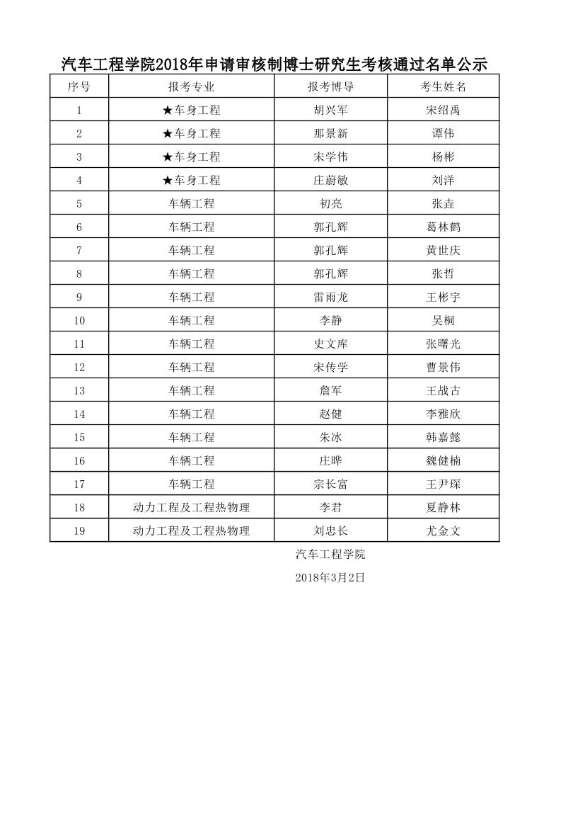 我院2018年申请审核制博士研究生考核通过名单公示