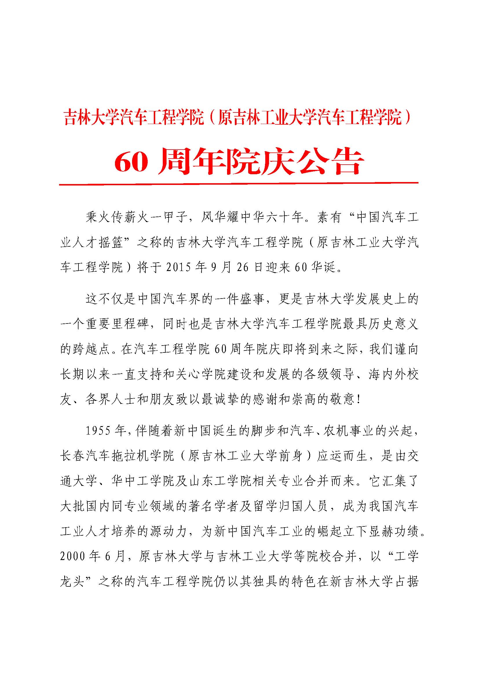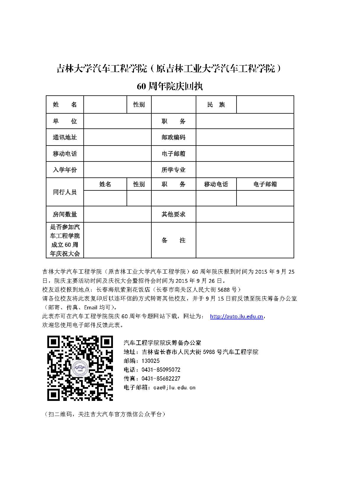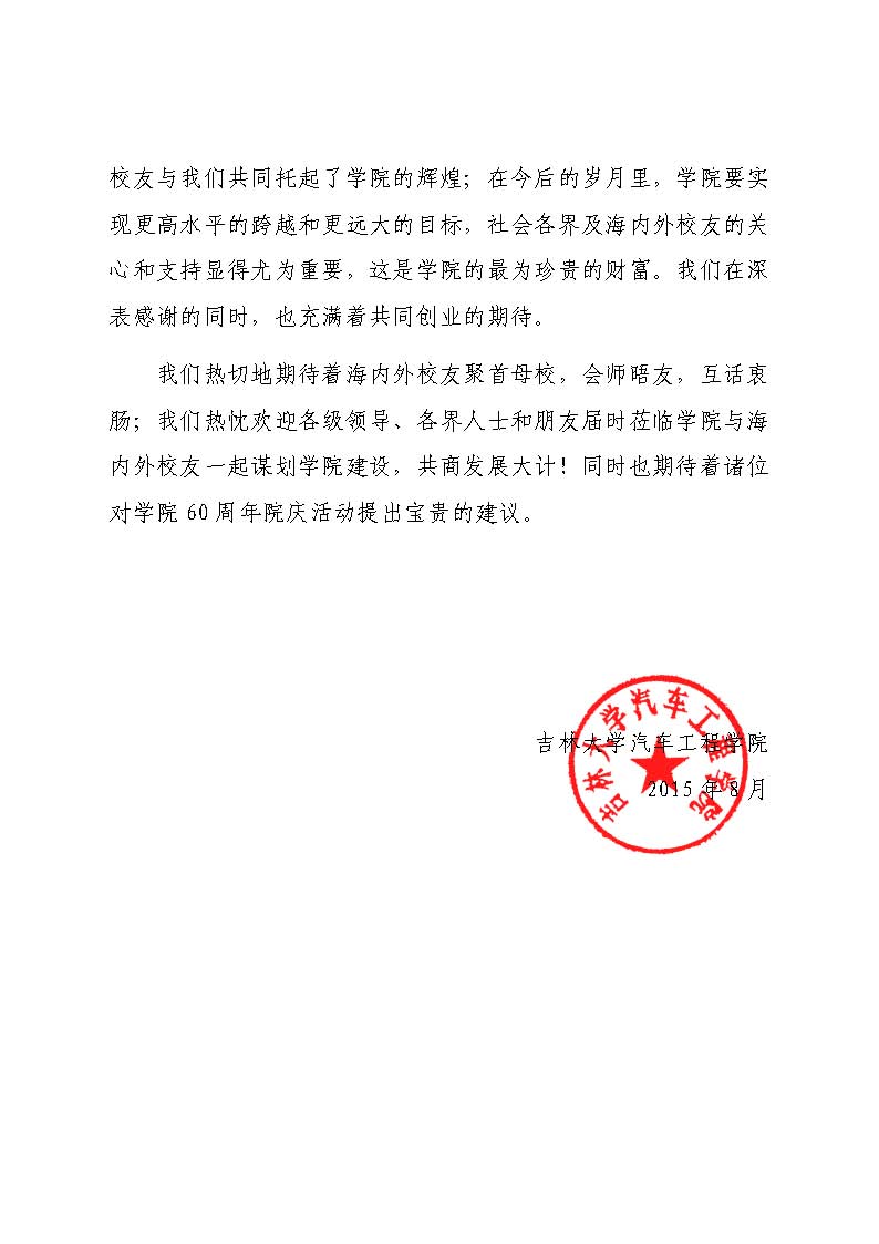 yd2333云顶电子游戏(原吉林工业大学yd2333云顶电子游戏)60周年院庆回执