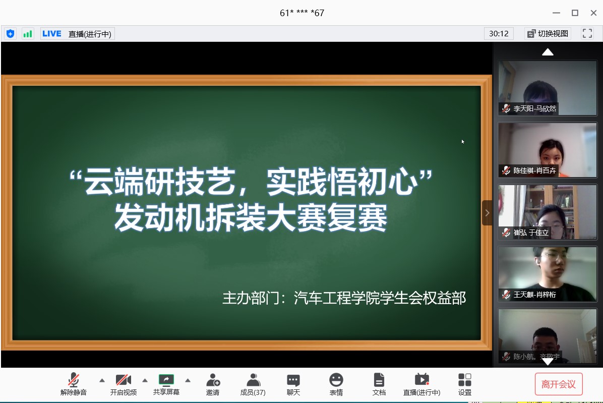 为了提升yd2333云顶电子游戏学生的专业素养,进一步考察晋级复赛八支队伍的专业知识水平,yd2333云顶电子游戏学生会于2020年5月24日通过软件“腾讯会议”,在线上举办了汽车发动机拆装大赛复赛。学生车队指导教师王达老师以指导教师身份出席复赛。