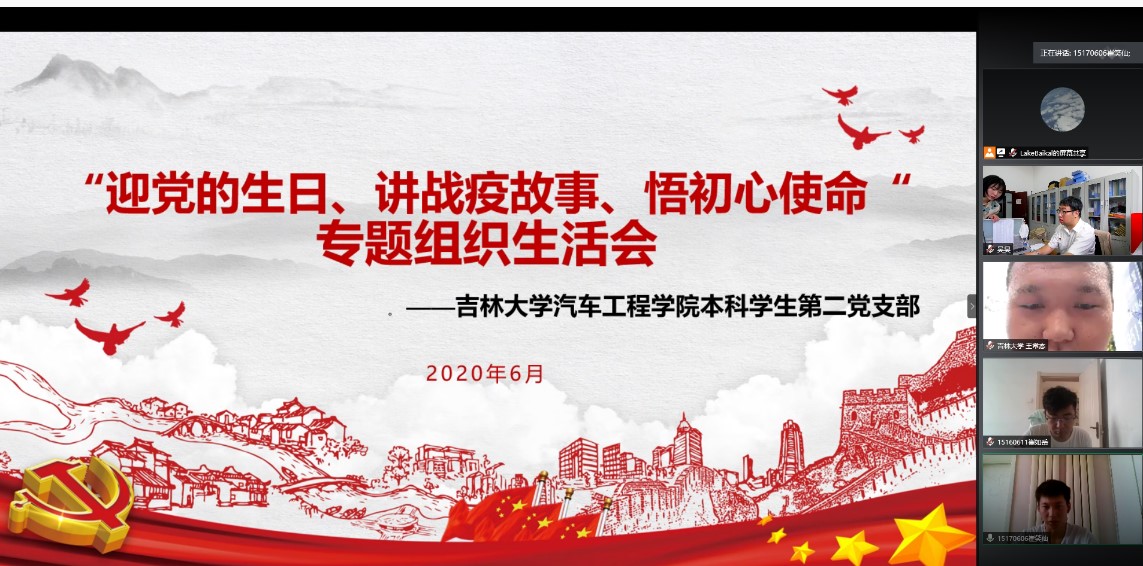 2020年6月30日上午10点,yd2333云顶电子游戏本科学生第二党支部通过腾讯会议召开了一场云端支部视频会议。会议以“迎党的生日、讲战疫故事、悟初心使命”为主题,党支部书记吴昊同志给大家讲授了一堂生动而又精彩的微党课,党支部26名同志积极参与。