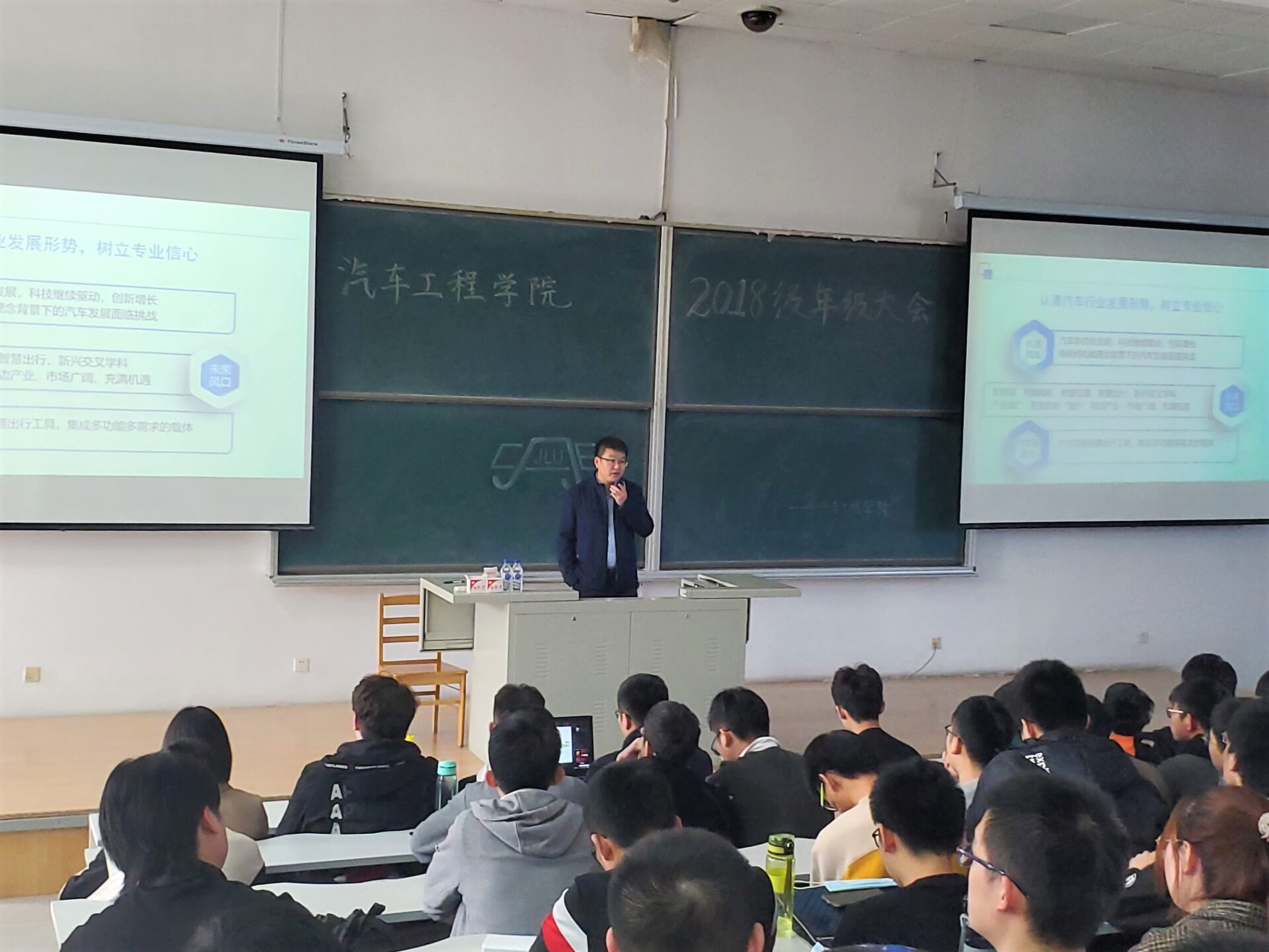 为让同学们认清汽车行业发展趋势,树立专业自信,增强日常生活管理,yd2333云顶电子游戏于2020年10月29日中午12:30在逸夫教育大楼B416召开2018级年级大会,yd2333云顶电子游戏党委副书记兼副院长盛磊老师、2018级辅导员张晓佳老师出席会议。