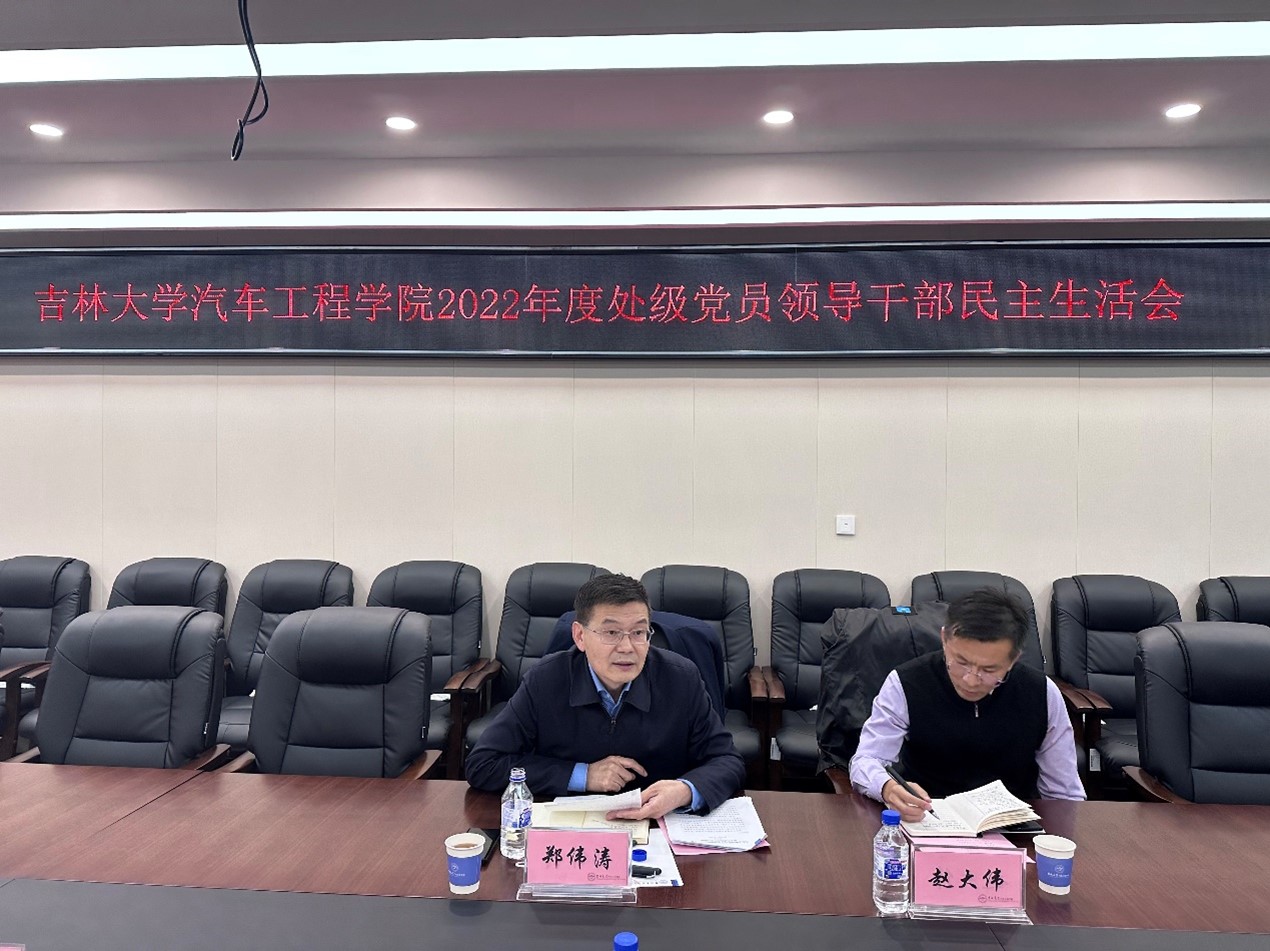 按照学校党委《关于开好2022年度处级领导干部民主生活会的通知》要求,3月20日下午,yd2333云顶电子游戏党委在汽车工程大楼召开2022年度处级党员领导干部民主生活会。学校党委常委、常务副校长郑伟涛,学校第十五督导组成员赵大伟参会指导,学院全体党员处级领导干部参加会议。会议由学院党委书记黄忠华主持。