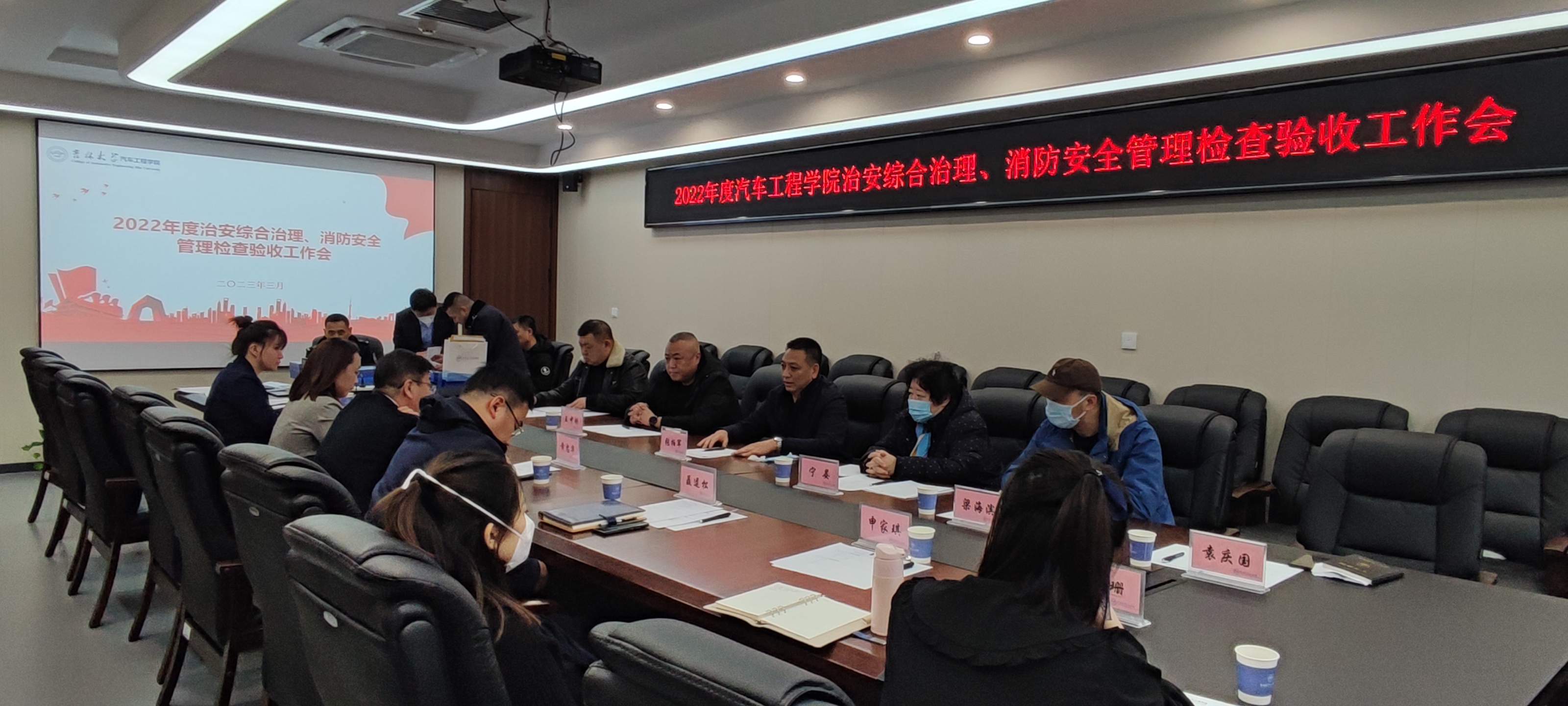 2023年3月2日下午,由学校保卫处东区保卫办主任张柏军一行组成的治安综合治理、消防安全管理检查验收工作组莅临yd2333云顶电子游戏,对学院2022年度综合治理、消防管理工作进行检查验收。yd2333云顶电子游戏党委书记黄忠华、行政副院长林海兰、副书记兼副院长聂逯松等参加了会议。