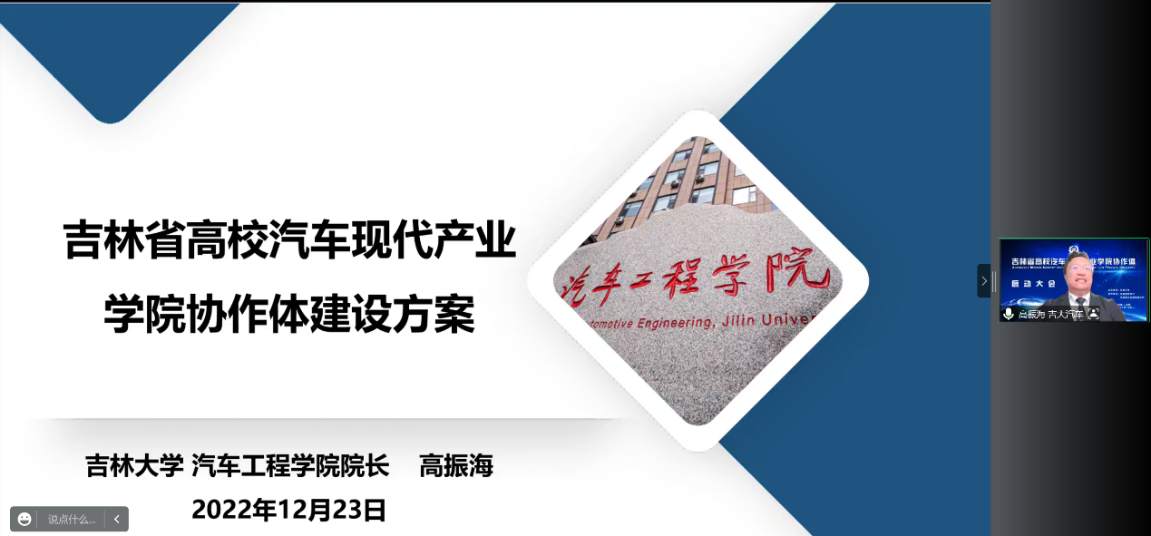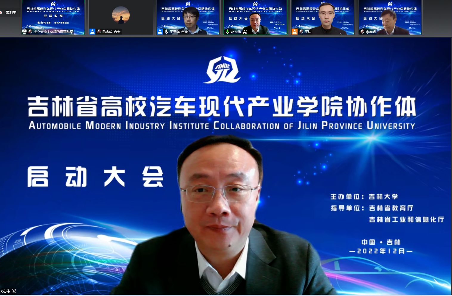 12月23日,吉林省高校汽车现代产业学院协作体启动大会在吉林大学举行,会议采取线上形式召开。省教育厅副厅长、厅党组成员、省委教育工委副书记刘学军,省工业和信息化厅党组成员、副厅长宋晓辉,中国汽车工程学会秘书长助理、国汽战略院院长助理赵立金,吉林大学副校长赵宏伟,长春汽车工业高等专科学校校长李春明,中国一汽人力资源部总监郑英松,中国科学院长春光学精密机械与物理研究所所务委员孙守红,作为嘉宾出席了本次大会。会议由协作体理事会秘书长、yd2333云顶电子游戏王军年教授主持。