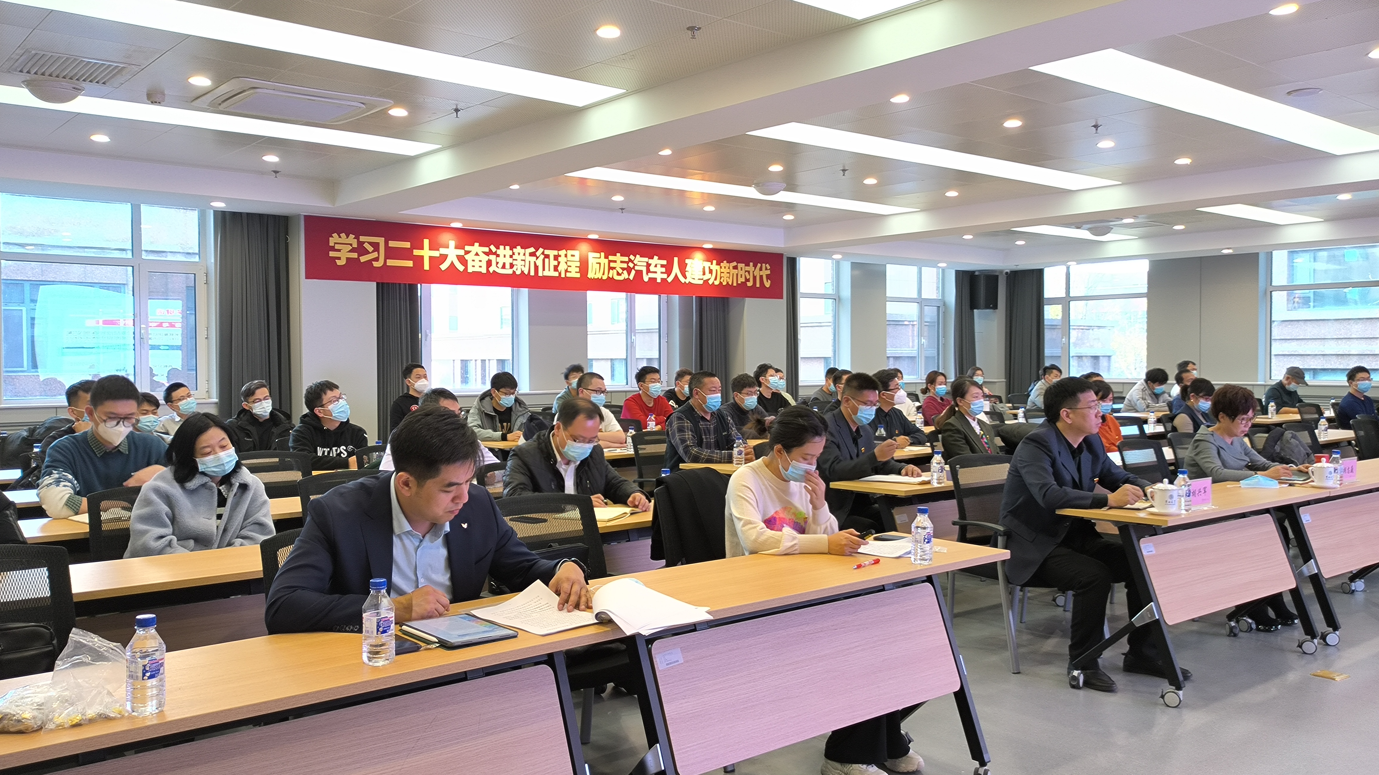为认真贯彻落实习近平总书记关于深入学习宣传贯彻党的二十大精神的重要指示精神,提升广大师生的思想政治素养,以党的二十大精神武装头脑、指导实践、推动工作。11月16日,学校党委常委、常务副校长以“为全面建设社会主义现代化国家全面推进中华民族伟大复兴而团结奋斗”为题,就学习宣传党的二十大精神为yd2333云顶电子游戏师生讲授专题党课。yd2333云顶电子游戏党委副书记胡忠巍、副院长胡兴军以及车身工程教工支部教师、研究生学生党员代表参加了会议。会议由yd2333云顶电子游戏党委书记黄忠华主持。